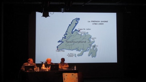 Sur ce cliché, notre secrétaire Etienne Bernet parlant des "armateurs patriotes" de Fécamp partis établir une présence française sur le French Shore en 1898.